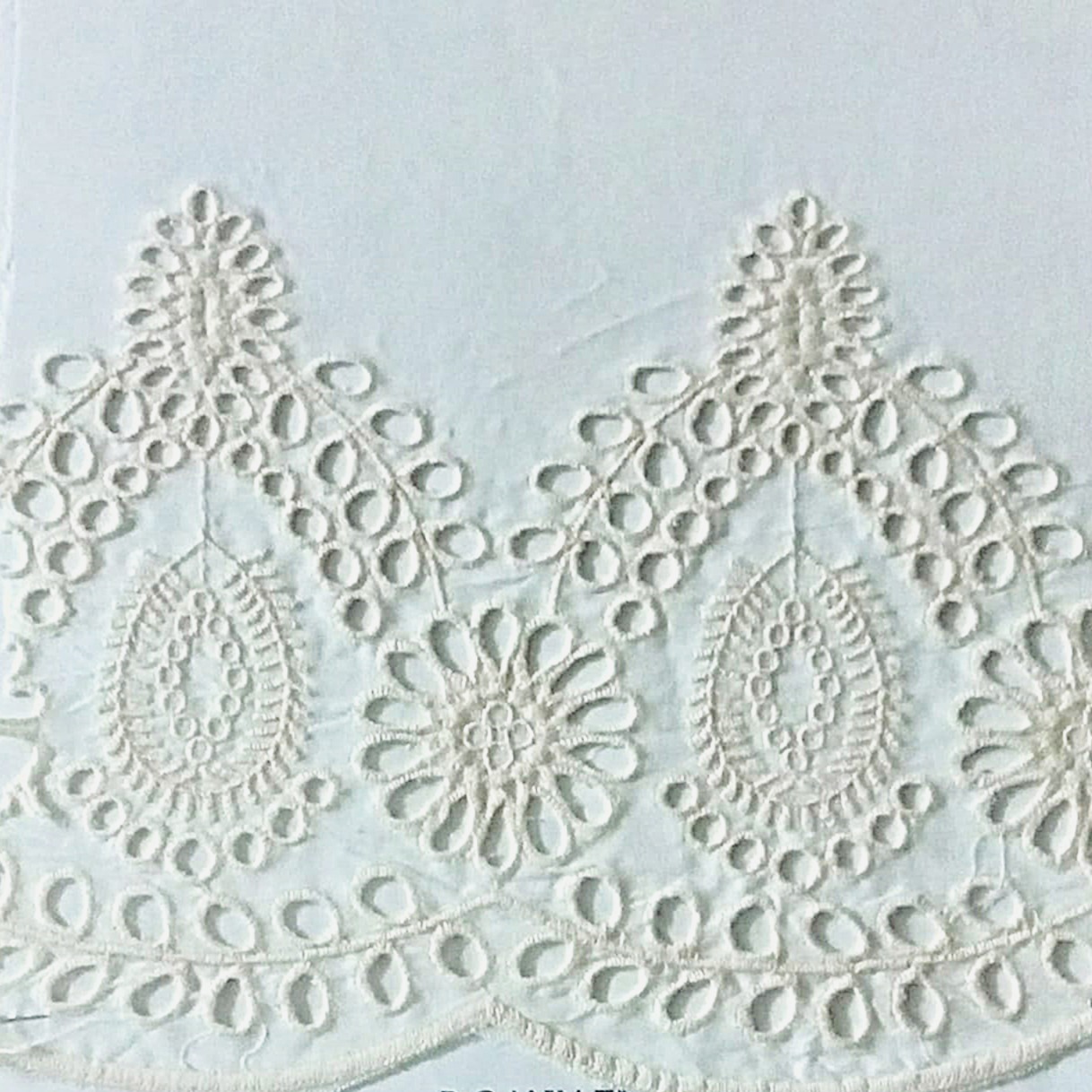 Cotton Cambric fabric double side border yarn Embroidery 6'' x 2 Emb width (Dyeable)